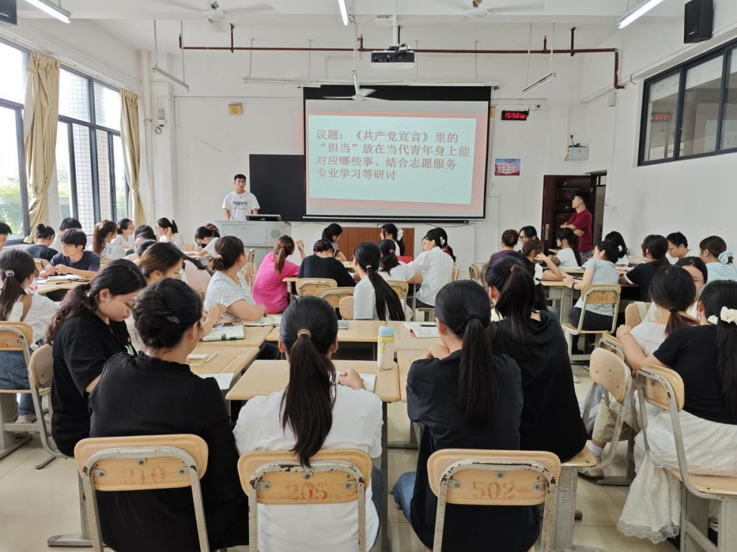 问题研讨分享环节,党员围绕“《共产党宣言》里的‘担当’在当代青年身上的体现”,结合专业学习与志愿服务畅谈理解与践行,内容涵盖学子用所学助力基层发展、参与公益服务等,深化对“担当”的认知,激发理论联系实际、践行青年责任的热情。