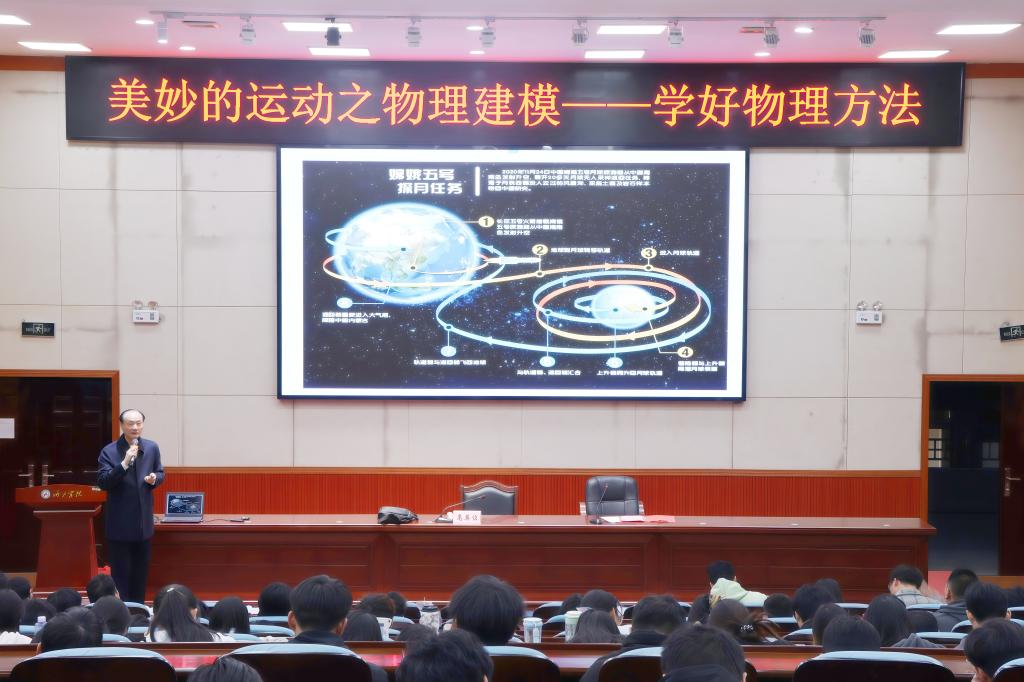 11月28日晚,数理学院在东区弘毅楼1-205报告厅举办“美妙的运动之物理建模——学好物理方法”专题讲座。银龄教师高英俊教授应邀担任主讲。讲座由学院副院长潘继环主持,物理学专业部分师生代表到场聆听。