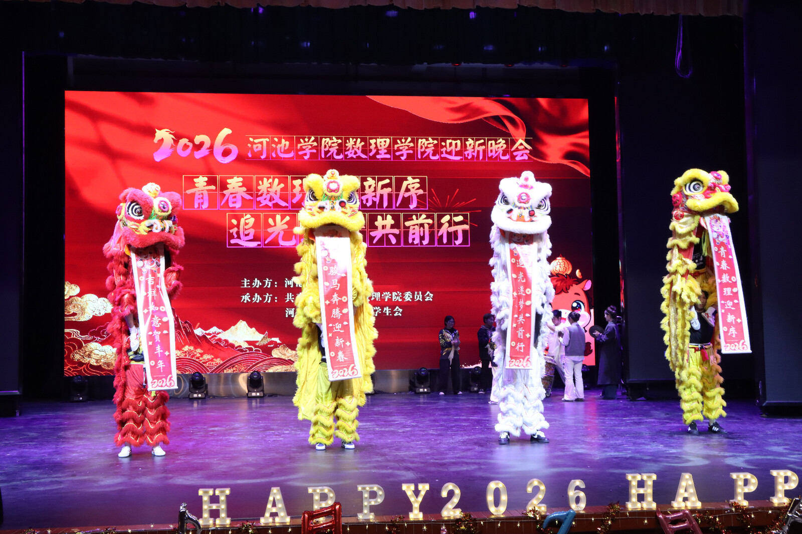 最后,在温馨欢快的节目串烧《数理一家人》中,晚会缓缓落下帷幕。本次晚会不仅是一场视听盛宴,更生动体现了数理学院大家庭的凝聚力与向心力,吹响了全体数理人在2026年携手前行、共谱新篇的奋进号角。(作者:高智源 摄影:韦炯坊、刘小敏校对:石宁审核:罗日才)