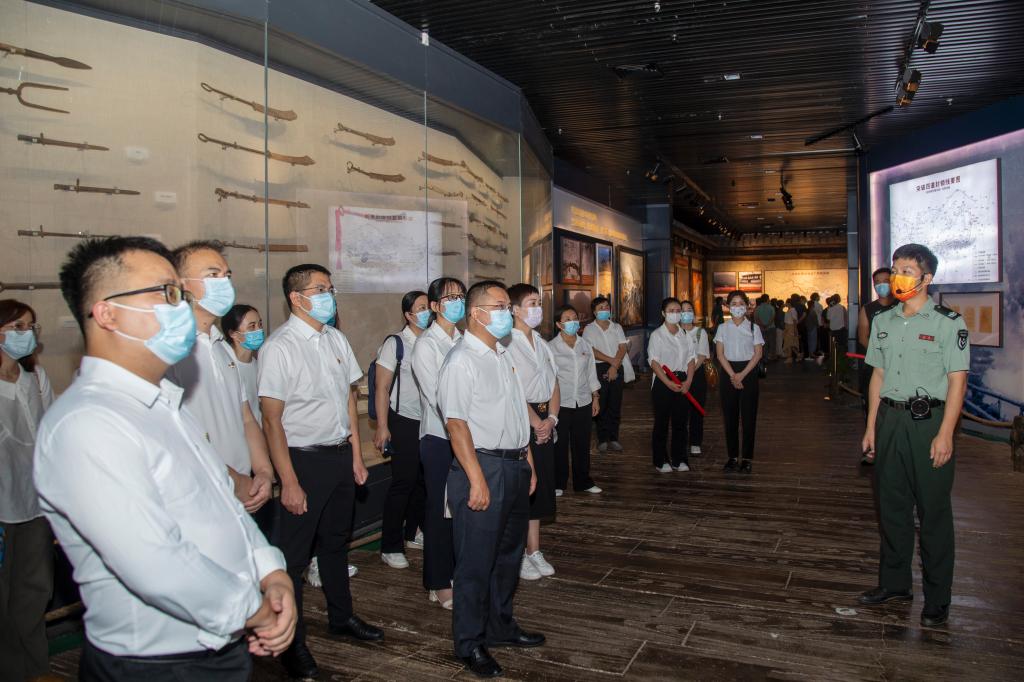 在讲解员的带领下,全体党员干部怀着对革命烈士的无限敬意参观了湘江战役纪念馆。大家认真观看文字、图片、影像和实物,详细了解有关湘江战役可歌可泣的历史细节,深刻感受革命先烈不怕流血牺牲的崇高精神,接受了一次深刻的爱国主义和革命传统教育。随后,大家来到凭吊广场瞻仰浮雕《红军魂》,向革命烈士默哀、敬献花篮,并重温入党誓词。