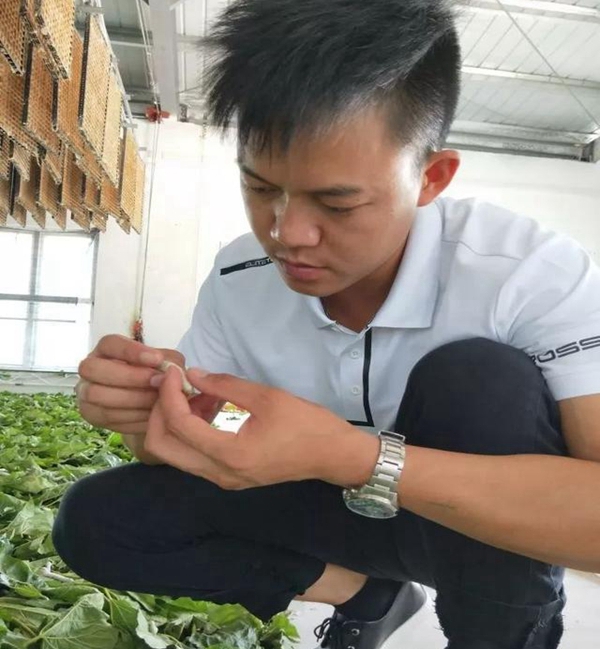 他总是忘不了在河池学院所学的桑蚕专业,一骨脑地来到南宁,来到偏僻而又离城60多公里的邕宁区那楼镇三江村种桑养蚕基地。他说,深圳固然很美,但不适合他发展,他是学桑蚕专业的,自然选择桑园。他很快被广西时宜农业科技有限公司聘用为技术员,一干就是两年,期间解决了不少技术问题,受到了桑园和蚕房农民群众的一致好评,被自治区授予科技特派员,接下来会通过程序申请加入中国共产党。