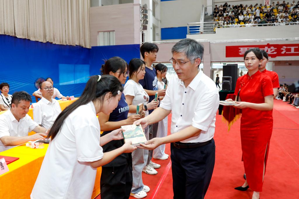 典礼上,体育学院蓝建卓教授、教师教育学院2022级学生廖馨甜、马克思主义学院2025级学生陈洁琼分别作为教师代表、学生代表、新生代表发言,分享体会和感悟,为新生快速融入大学生活提供参考。