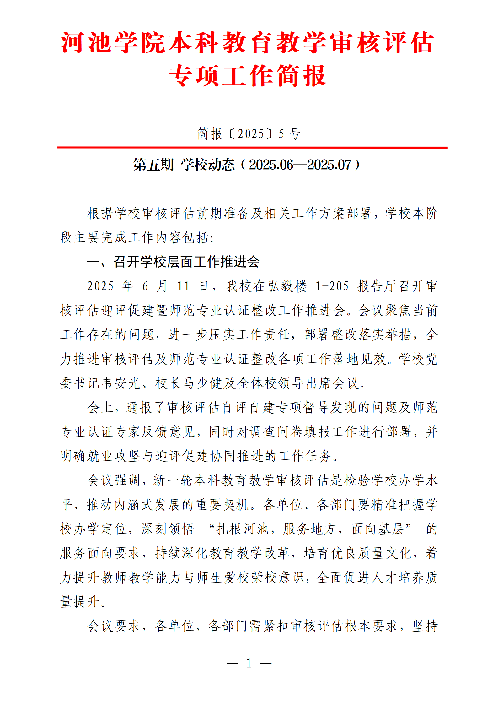 河池学院本科教育教学审核评估专项工作简报第五期