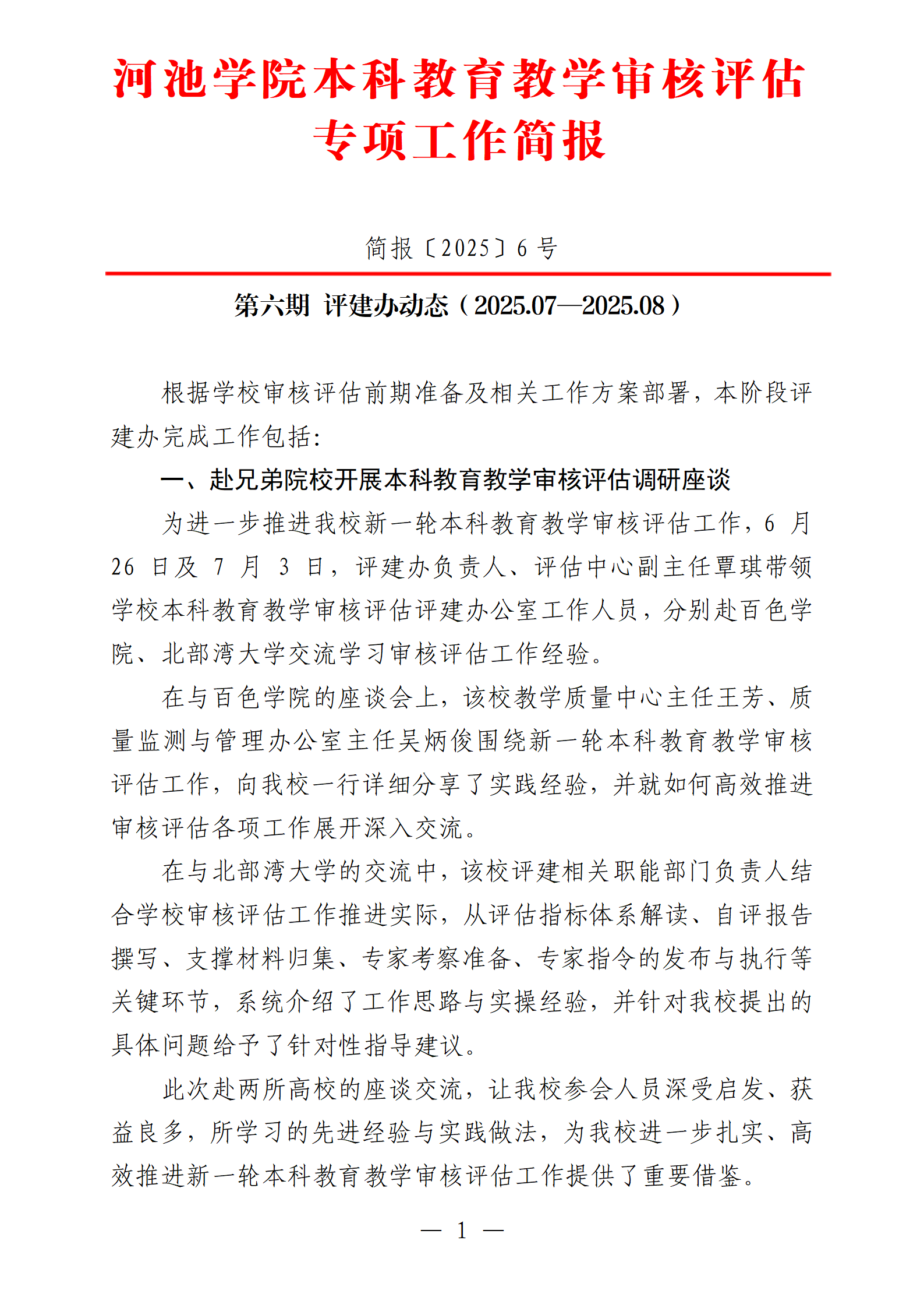 河池学院本科教育教学审核评估专项工作简报第六期