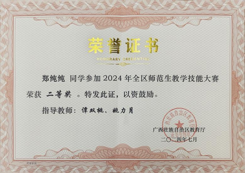 (二)自治区级一流专业点建设迈出新步伐。近年来,马院为社会输送了一批又一批“下得去、留得住、用得上、干得好”中学思政课教师,涌现了以天峨县三堡中学校长莫文席为代表的优秀思政课教师群体。黄勇樽教授等获广西基础教育自治区级教学成果一等奖1项、二等奖2项。马院注重以赛促学,大力提升思想政治教育专业本科生的综合素质和核心能力。2020年,2016级思政本科班获“全国五四红旗团支部”荣誉称号,是当年全区高校唯一获得此殊荣的基层团支部。获“挑战杯”广西大学生课外学术科技作品竞赛二等奖2项。在2023年第十二届“华文”师范院校思想政治教育专业师范生教学技能测试与交流展示活动中,获二等奖1项、三等奖5项;在2023年和2024年全区师范生教学技能大赛中,分别获三等奖1项、二等奖1项;在2023年第九届“田家炳杯”全国师范院校师范生教学技能竞赛中获三等奖1项;在2024年全区师范生信息化教学应用大赛中获一等奖1项;在2024年全国大学生数字素养大赛教学课堂应用赛道获特等奖3项、二等奖3项等。每年均有一批大创项目获得省级、国家级立项和结项。升学率逐年提高。每年就业率接近100%。2025年思想政治教育专业接受专业认证。